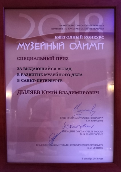 Юрий Дыляев получил приз за выдающийся вклад в развитие музейного дела в Санкт-Петербурге